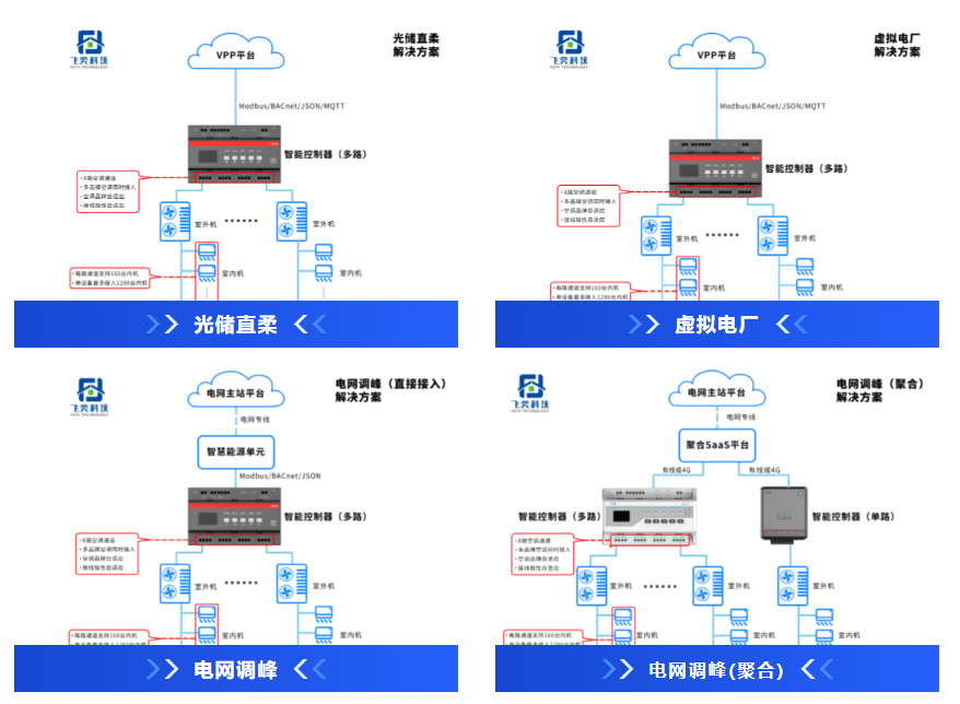 飛奕科技自主研發的空調智能控制器、空調集中控制系統、空調節能管理系統、空調健康管理系統等產品,為樓宇自控、電網調峰、智慧節能、合同能源管理、數字園區等領域提供中央空調集控、計費一站式解決方案。